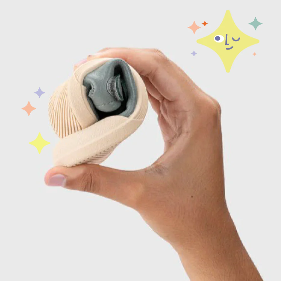 - Lorsque vous pliez la chaussure sur elle même, elle doit avoir une certaine souplesse, et un pli doit être présent au niveau de la base des orteils.